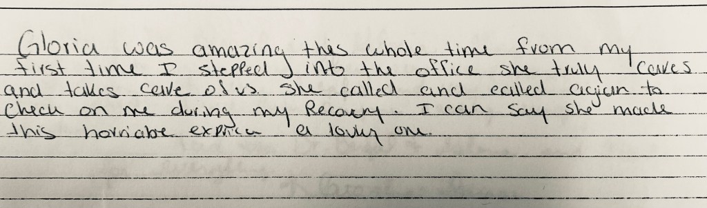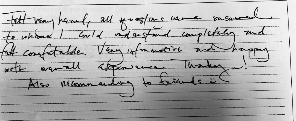 Very knowledgeable of my situation. Wonderful with her patient / me. Treated me with respect and listened to my concerns. Couldn’t of asked for better.